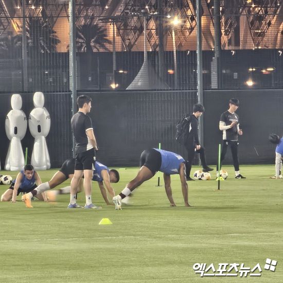 선수단 버스를 타고 훈련장에 도착한 선수단은 곧바로 몸을 풀고 훈련에 돌입했다.