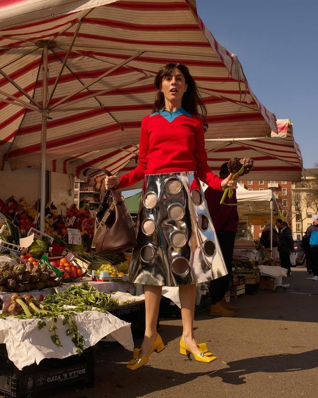레드 톱을 연출하는 방식도 다양합니다. 타마라 모리와 비키 몬타나리는 크림색 핀 스트라이프 팬츠에 레드 니트를 매치해 손쉬운 데일리룩을 완성했죠. 여기서 조금 더 드레스업하고 싶다면, 구조적인 실루엣의 메탈릭 스커트와 옐로 힐처럼 과감한 포인트를 더해보세요.