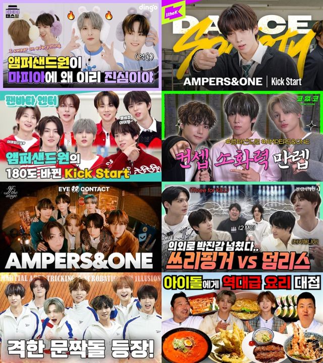 그중 예능 콘텐츠에서 앰퍼샌드원의 활약이 눈에 띈다. 원더케이 오리지널 콘텐츠 ‘댄스 소사이어티’, 촉촉 채널의 ‘오프 더 스테이지’와 같은 음악 중심의 콘텐츠에서는 신곡 무대를 통해 멤버들 간의 환상적인 합을 증명했고, 칼군무와 넘치는 끼로 대중들을 사로잡았다. 딩고 뮤직의 ‘마피아 댄스’에서는 마지막까지 완성도 높은 무대를 선사하는 신인의 패기를, 샤랄라스튜디오의 ‘코없코’에서는 탄탄한 가창력을 보여줬다.