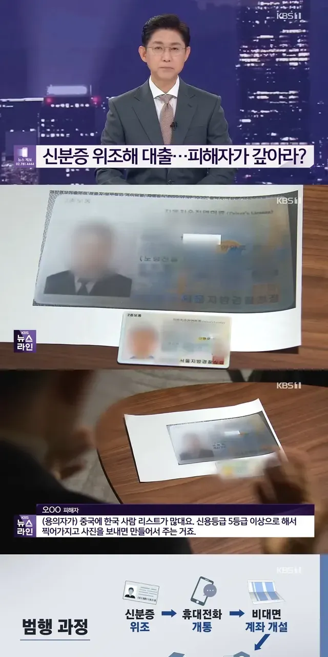범인은 중국에서 유출된 신용 5등급 이상 한국인 개인정보를 획득해 위조 신분증 제작