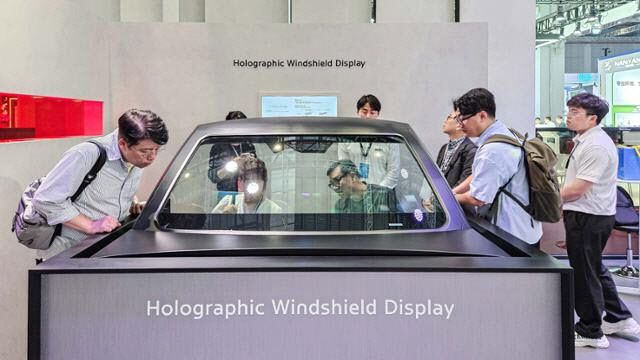 현대모비스 부스에서 가장 이목을 집중한 전시품은 ‘홀로그래픽 윈드쉴드 디스플레이(홀로그래픽HUD)’였다. 홀로그래픽HUD는 차량의 전면 유리창을 투명 디스플레이로 활용해 주행 정보, 내비게이션, 미디어 콘텐츠까지 통합적으로 제공하는 미래형 디스플레이 솔루션이다.