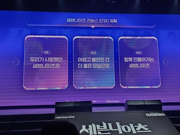 김정기 개발총괄은 ‘세븐나이츠 리버스’가 ▲‘우리가 사랑했던 세븐나이츠로’, ▲‘아쉽고 불편한 건 더 좋은 모습으로’, ▲‘함께 만들어가는 세븐나이츠’ 등 3가지 핵심 테마를 기반으로 하고 있다고 강조했다.