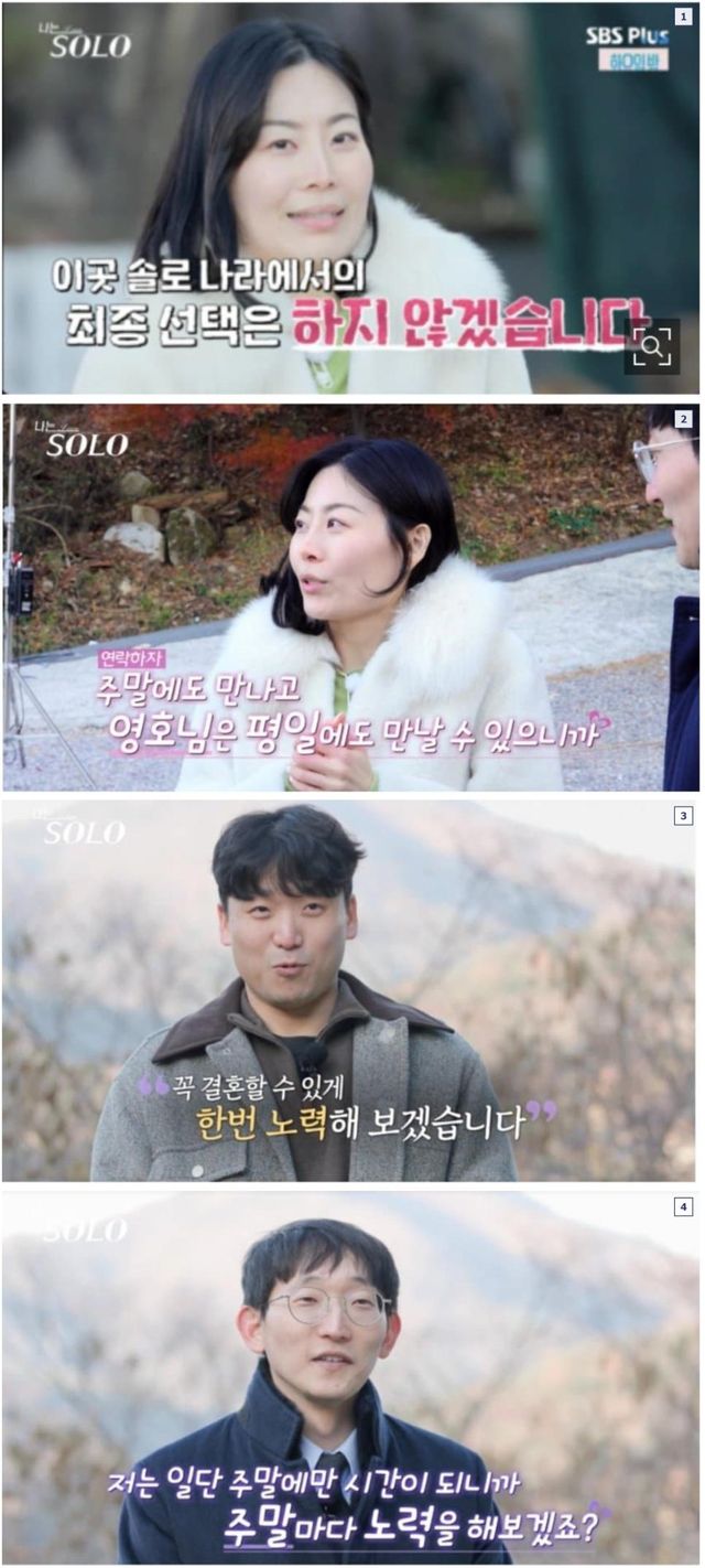 광수와 영호 둘다 50대 50으로 마음에 들어서최종선택안함그리고 밖에 나가 만나보자고 함