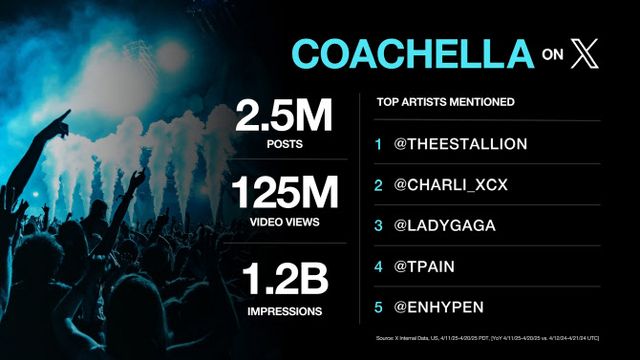 X(옛 트위터)에서 운영하는 ‘Music’ 계정이 22일 발표한 자료에 따르면 엔하이픈은 올해 ‘코첼라 밸리 뮤직 앤드 아츠 페스티벌’(Coachella Valley Music and Arts Festival, ‘코첼라’) 출연 아티스트 중 X에서 다섯 번째로 많이 언급된 팀이다. ‘코첼라’ 기간 동안 X에 업로드된 관련 게시물은 총 250만 건, 누적 조회수는 12억 회에 달했는데 언급량(MENTIONED) ‘톱 5’에 이름을 올린 K팝 아티스트는 엔하이픈뿐이다.