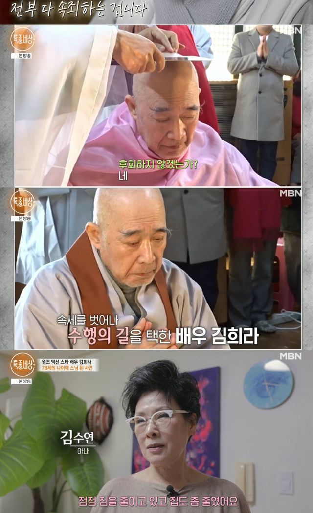 24일 방송된 MBN '특종세상'에서는 배우 김희라가 출연해 스님이 된 이유 등 다양한 이야기를 전했다.