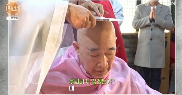 김희라는 "죄 지은 길 전부 다 속죄하는 거다"라고 말해 궁금증을 높였다. 최근 삭발식을 하고 진짜 스님이 됐다고.