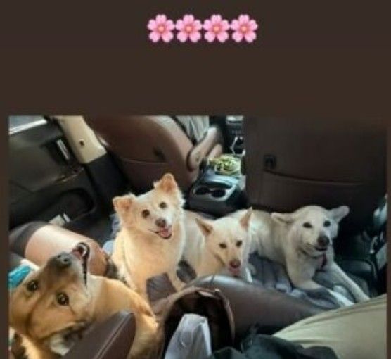 첫 번째 사진에는 이효리의 차량 뒷좌석에 네 마리의 반려견들이 옹기종기 모여 앉아 창밖을 바라보는 모습이 담겼다. 봄 햇살을 즐기는 듯한 반려견들의 사랑스러운 모습에 이효리는 꽃 이모티콘을 더해 설렘 가득한 분위기를 표현했다.