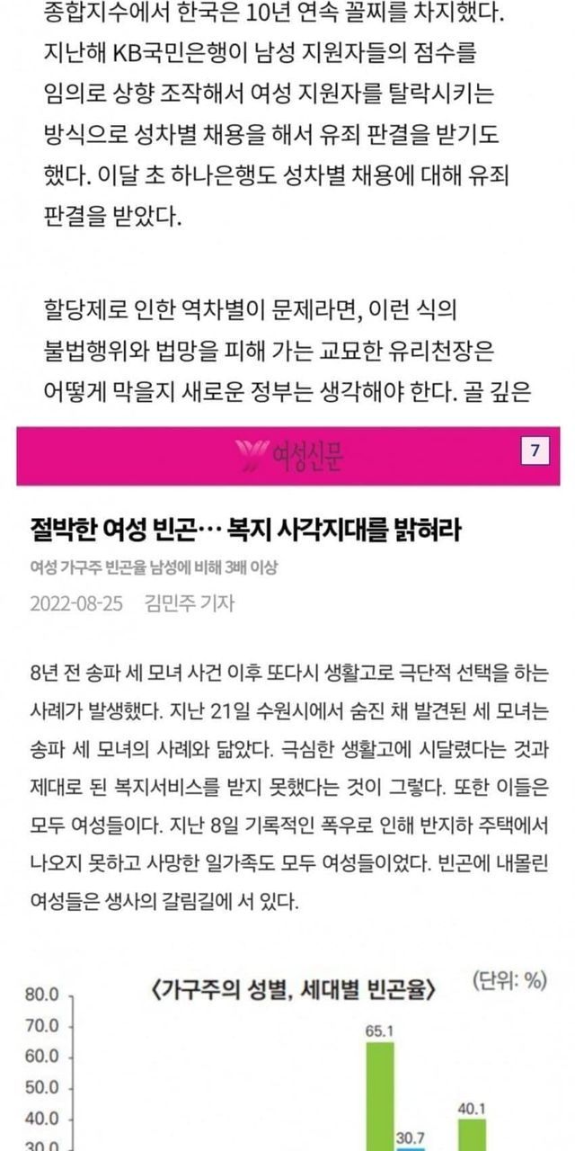 이게 유리천장 남여차별이라는 주장이 지속적으로 나오고 있다...
