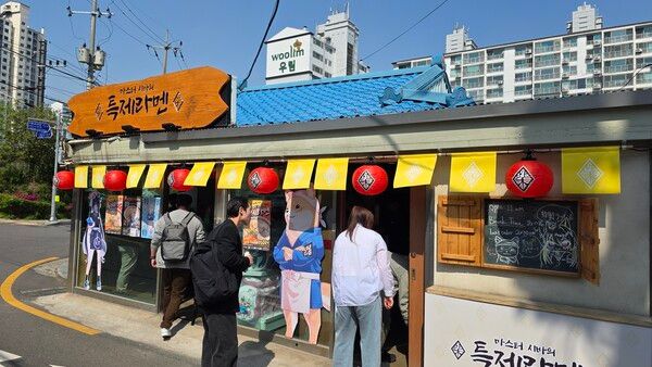 그런 가운데, 여느 게임에서도 볼 수 없었던 독특한 팝업이 25일 이용자들을 찾았다. 넥슨 ‘블루 아카이브’의 라멘 팝업이 그 주인공으로, 용산 ‘밤노을’ 팝업 스토어를 장식한 ‘마스터 시바의 특제 라멘’ 가게 현장을 찾아가 봤다.