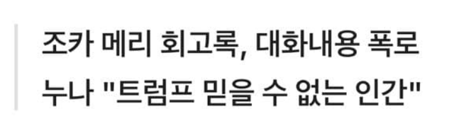 누나 메리앤은 트럼프 대통령에 대해 “원칙이 없다. 없다, 절대로 없다(none, none)”고 말했다. 그러면서 트럼프가 경영하던 기업들이 부도난 상황을 설명하면서 “믿을 수 없는 사람”이라고 평가했다. 또 “그 빌어먹을 트윗과 거짓말, 세상에나”라고 탄식하면서 “너도 알잖아. 말 바꾸기와 준비 부족, 그리고 거짓말”이라고 말했다.