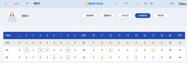 2R : 3언더파 69타(버디 4개, 보기 1개) 합계 3언더파 141타 공동2위