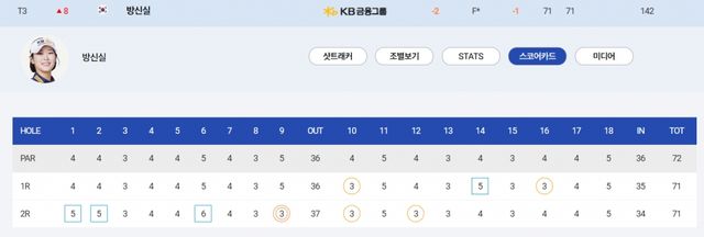 2R : 1언더파 71타(이글 1개, 버디 2개, 보기 3개) 합계 2언더파 142타 공동3위