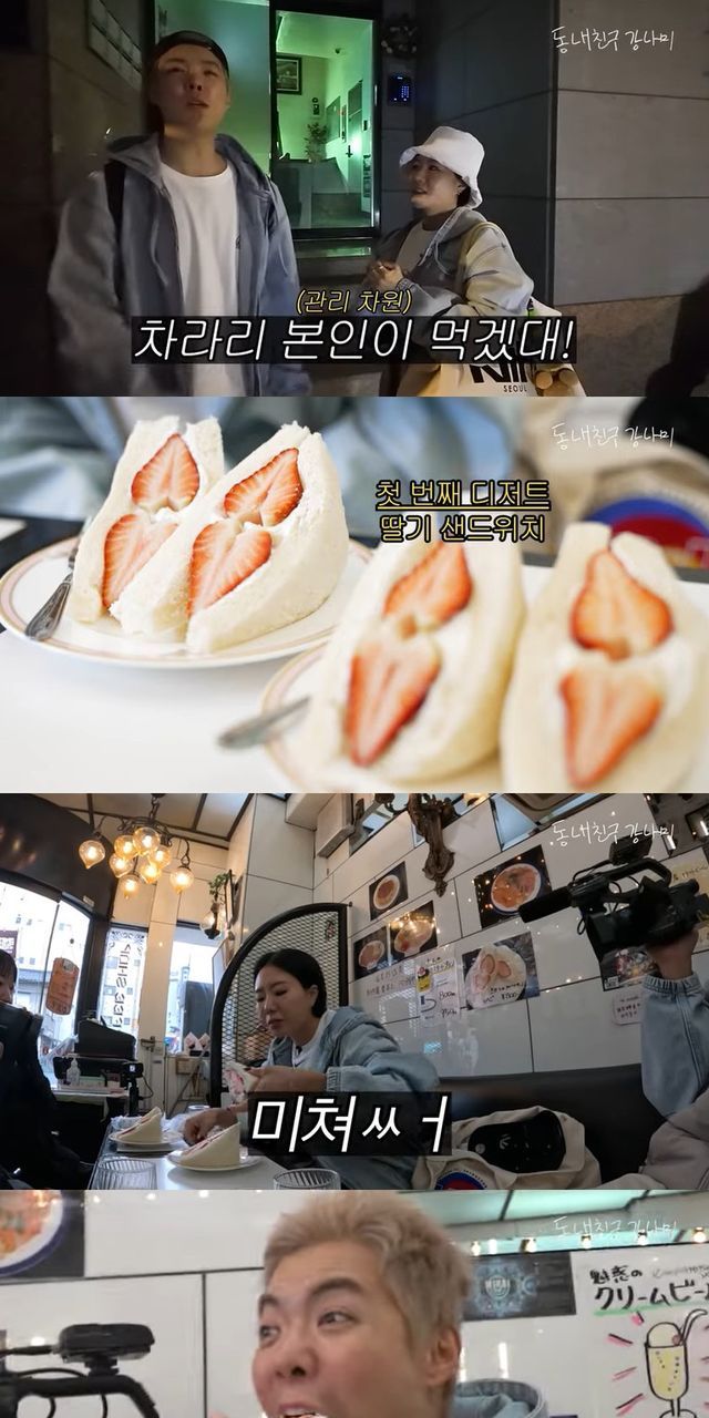 우중충한 날씨에 "비가 너무 온다. 이럴 때는 파전인데"라며 디저트 투어에 약간의 아쉬움을 드러내던 이상화는 딸기 샌드위치로 유명한 첫 번째 가게로 이동했다.