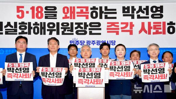 뉴시스 보도에 따르면, 민주당 광주시당은 25일 광주 서구 광주시의회에서 기자회견을 통해 "박선영 진실화해위원장이 5·18 북한군 개입설에 대한 질문에 '그 부분에 대해서 잘 모른다'라고 답변했다"며 "이는 중대한 역사 왜곡이자 민주주의에 대한 모독이다"고 비판했다.