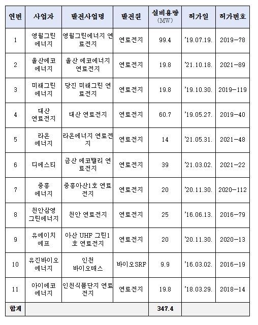 또한, 이날 전기위원회는 공사계획인가기간ㆍ준비기간이 만료한 27개 발전사업(’24년 11월말 기준)에 대해 기간 연장 여부 심의 및 청문 절차 등을 거쳐 11개 발전사업(총 347MW 규모)의 허가를 취소하기로 했다.