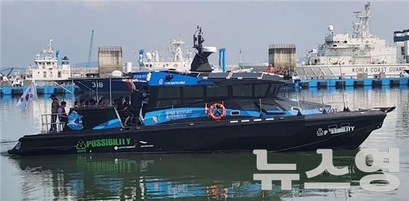 올해로 2년째 투입되는 친환경 항만안내선은 16톤급 규모의 파워보트로 100% 재활용이 가능한 HDPE(고밀도폴리에틸렌) 소재로 제작됐다.