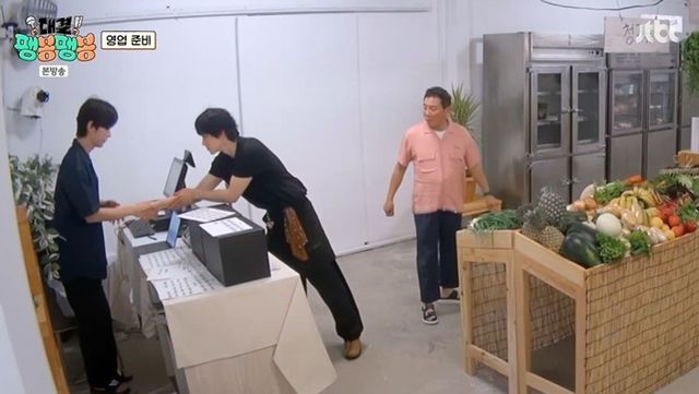먼저 팬트리에 장보러 간 팽팀(팽현숙, 최양락, 유승호). 계산대엔 누군가 앉아 있었다. 남자를 본 팽현숙은 “왜 이렇게 잘생겼냐. 연예인이냐”고 물었고, 남자는 “마트 주인”이라고 설명했다. 하지만 남자는 ‘연애 남매’에 출연했던 박재형이었다. 최양락은 “이봉원 가게는 장 봤냐. 게을러서 무슨 장사를 하겠단 건지”라고 견제해 웃음을 안겼다. 그 시각 봉팀(이봉원, 이은지, 곽동연)은 다른 곳에서 먼저 장을 본 주방에 입성했다. 이봉원은 지난밤과는 달라진 기계들을 살핀 후 팬트리로 향했다. 곽동연은 박재형을 알아보고 인사하기도.