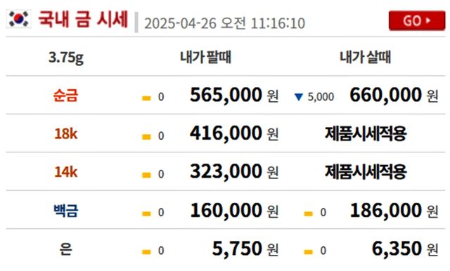 순금(24K) : 매입가 66만 원 / 매도가 56만 5000원