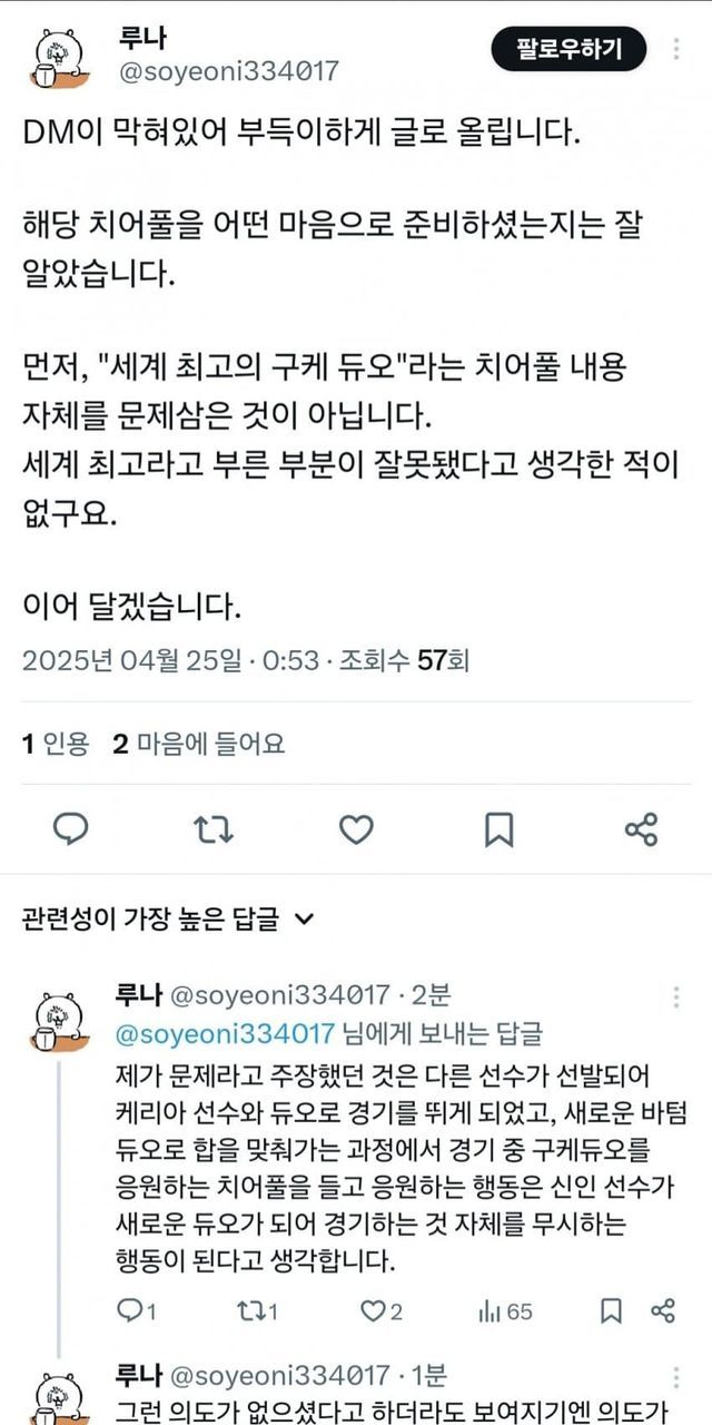 하지만 '그 성별' 특징답게 바로 사과문에서 기싸움시전
