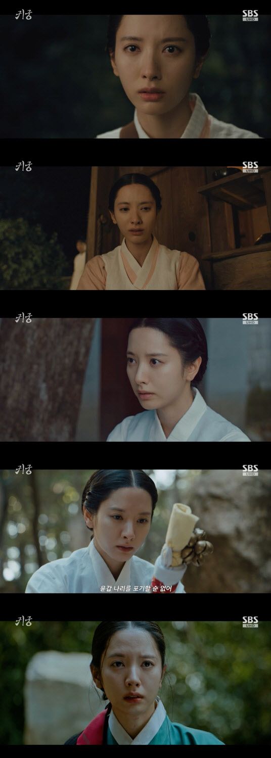 먼저 여리는 윤갑을 향한 애절함으로 안타까움을 자아냈다. 그는 애타게 찾던 윤갑의 혼령이 팔척귀에게 끌려가는 걸 목격, 경악을 금치 못했다. 이어 윤갑의 몸에 빙의한 이무기 강철이(육성재 분)가 여리의 입을 막아 윤갑을 그저 무력하게 지켜보는가 하면, 윤갑이 팔척귀한테 먹힌 상태라는 강철이의 말을 듣고는 눈빛이 크게 흔들리기도. 이후 여리는 윤갑의 옷에서 찾은 어린 시절 건넸던 장명루를 손에 쥔 채 소리 없이 흐느끼기만 해 시청자들의 마음까지 아프게 했다.