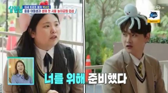 놀이동산에 입성한 박효정은 교복을 입고 싶어 했다. 박서진은 동생을 향해 "미쳤나?"라고 말하면서도 교복 렌트숍으로 들어갔다.