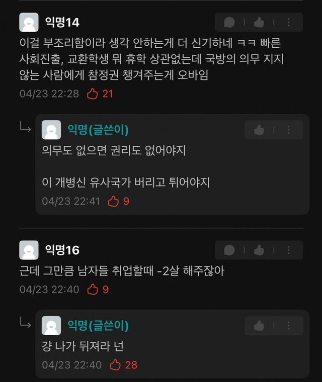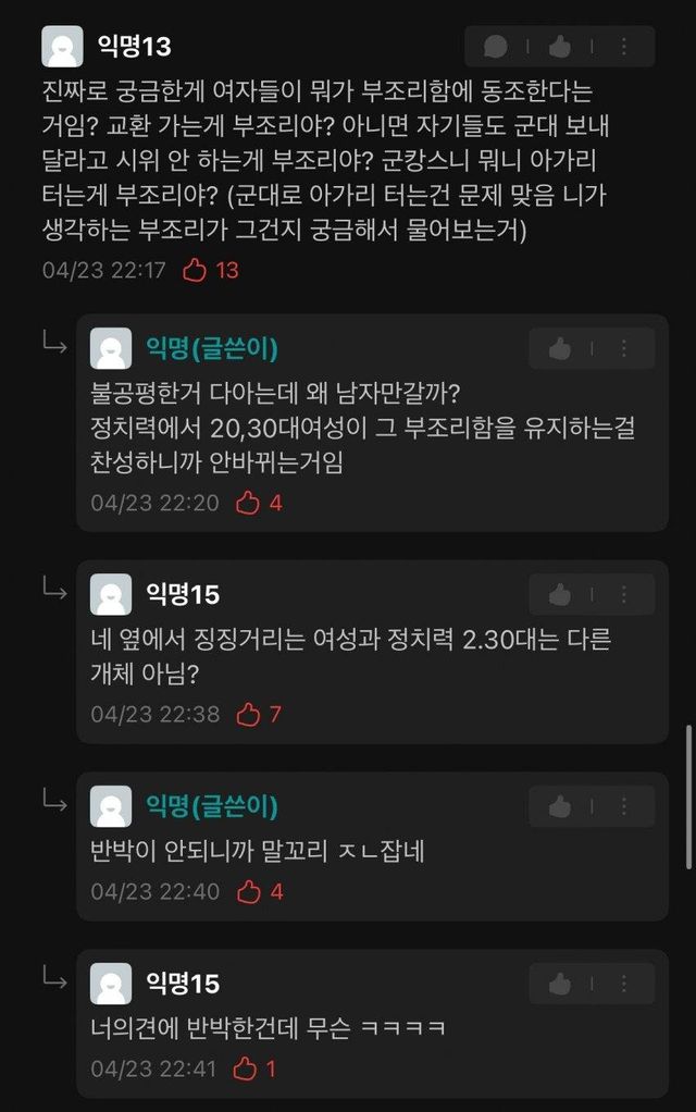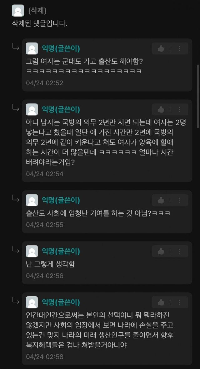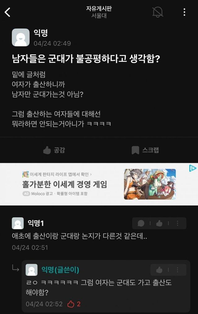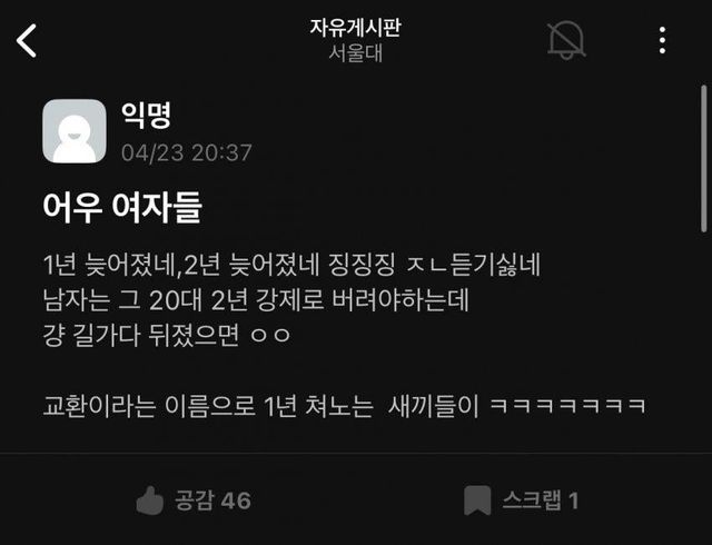 우리나라 최고 엘리트들이 모인 대학에서 2025년에 진지하게 나오는 말"여자는 애 낳는데 군대도 가야돼?"