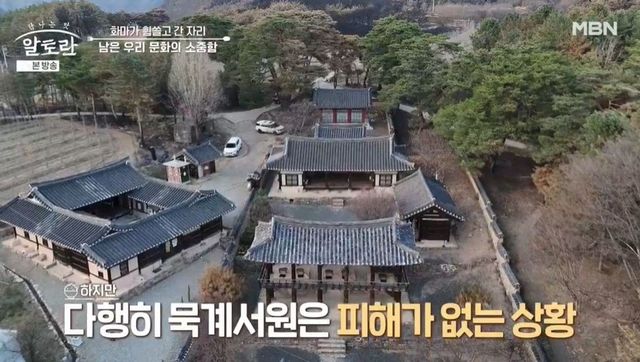 그런 가운데 이상민, 이연복, 차유나, 김미령은 독립운동가 후손이 운영하는 안동한우불고기를 먹은 후 묵계서원으로 향했다. 이상민은 “안동은 한옥 문화재가 유명하지 않냐. 얼마 전 산불로 인해서 많이 전소되고”라고 안타까워하며 곳곳에 보이는 산불 피해 흔적들을 봤다. 다행히 묵계서원은 피해가 없는 상황. 드라마 ‘미스터 션샤인’ 촬영지이자 국가 지정 문화유산 명승으로 지정된 만휴정도 당시 소실된 것으로 추정되었으나, 불길이 번지기 직전 방염포로 덮어 지켜낼 수 있었다. MC들은 “다시 많은 분들이 찾아주셨으면 좋겠다”고 전했다.
