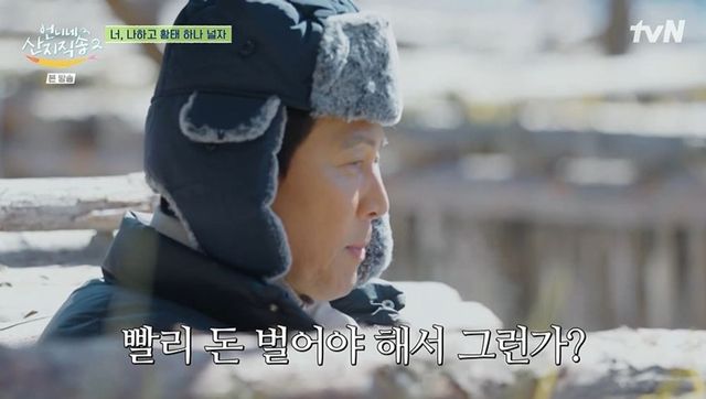 이정재는 “여성 세 명이면 재욱 씨가 화장실 같은 게 좀 불편하겠다”고 했지만, 박준면은 “남녀 구분이 없다. 조금 불편하다가 금방 풀어지게 될 거다”고 예고했다. 이정재는 황태가 들은 상자를 올려주다가 사고를 쳤다. 찢어진 박스는 1층에서 널기로. 이정재는 “다들 진짜 열심히 한다”며 연신 감탄했고, 염정아는 “이 나무 한 목에 4천 원을 받는다”고 열심히 하는 이유를 밝혔다. 이정재는 “찬거리는 잘 나오겠다”고 기대하기도. 이정재는 “말도 잘 안 하고 일만 하시네. 4천 원씩 빨리 벌어야 해서 그런 건가”라고 했고, 염정아는 “네. 빨리 끝내고 가서 놀아야지”라고 의지를 불태웠다.