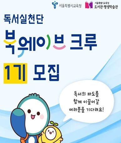 ‘북웨이브 크루’는 북웨이브 캠페인을 이끌어갈 시민 독서실천단으로 4월 28일부터 5월 18일까지 선착순 400명을 모집하며, △북웨이브 캠페인의 가족 단위 독서 활동을 적극 실천할 수 있는 학부모 등 일반 시민과 △서울특별시교육청 도서관·평생학습관 내 독서동아리·학습동아리와 같은 시민 참여 공동체 일원을 대상으로 한다. 자세한 내용은 ‘북웨이브 크루’ 지원을 위한 온라인 안내페이지에서 확인할 수 있다.