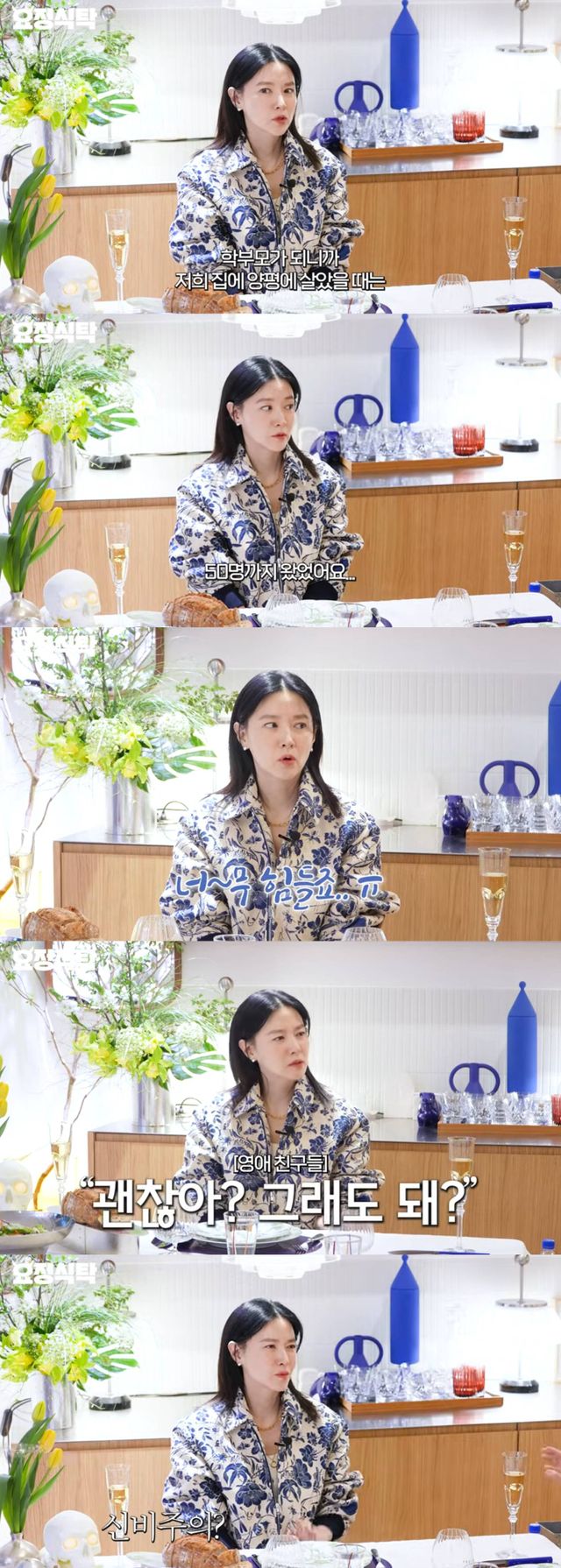 이날 이영애는 자신이 내향형이라고 말하며 "극I여도 학부모가 되니까 저희 집 양편에 살았을 때는 50명까지 왔었다. 너무 힘들었다"라고 말해 웃음을 자아냈다.