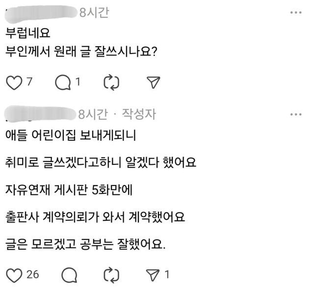 ㅊㅊ 쓰레드장르(판타지,로맨스,BL등) 다양하게 쓰시고,문피아 시리즈 연재하신다고 함