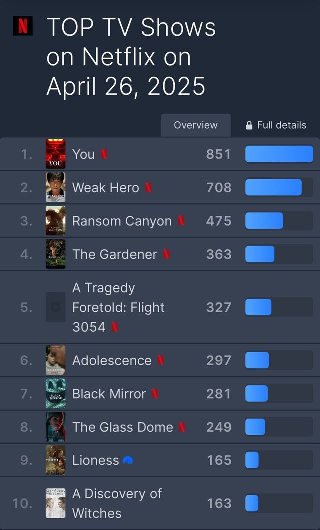 지난 27일 글로벌 OTT 플랫폼 시청 순위 집계 사이트 플릭스패트롤에 따르면 ‘약한영웅 Class 2’가 공개 하루 만에 708점을 기록하며 넷플릭스 TV쇼 부문 글로벌 2위를 차지했다. 한국에서 1위로 진입한 것은 물론 남미와 동남아시아, 중동권 국가 등에서 1위에 이름을 올리며 첫 발걸음을 내디뎠다.