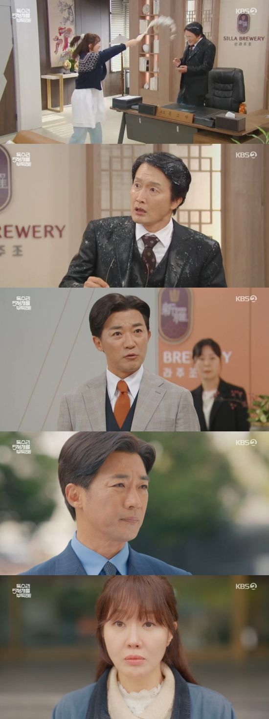 이후 한동석은 "아무리 약이 올라도 그렇지 막걸리를 뿌리면 어떡합니까. 그 욱하는 성격 좀 죽여요. 독고탁 회장이 직원한테 사주했다는 증거는 없잖아요"라며 만류했고, 마광숙은 "그 위험한 짓을 혼자 시키지도 않았는데 하겠냐고요"라며 분노했다.