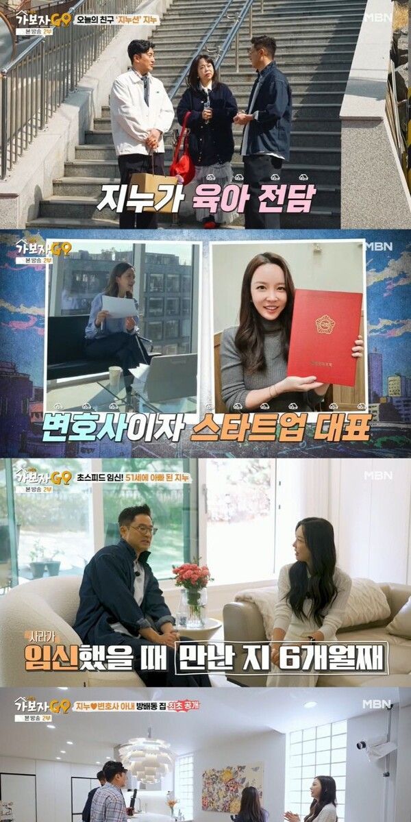 27일 방송된 MBN '가보자GO4'에 출연한 지누는 주부습진으로 거칠어진 손을 보여주며 "아내가 워낙 바빠서 제가 도와주고 있다"고 밝혔다. 이어 "5살 아들 육아를 전담하고 있다. 아내는 변호사인데 사업도 해서 바쁘다"라며 워킹맘 아내를 자랑스러워했다.