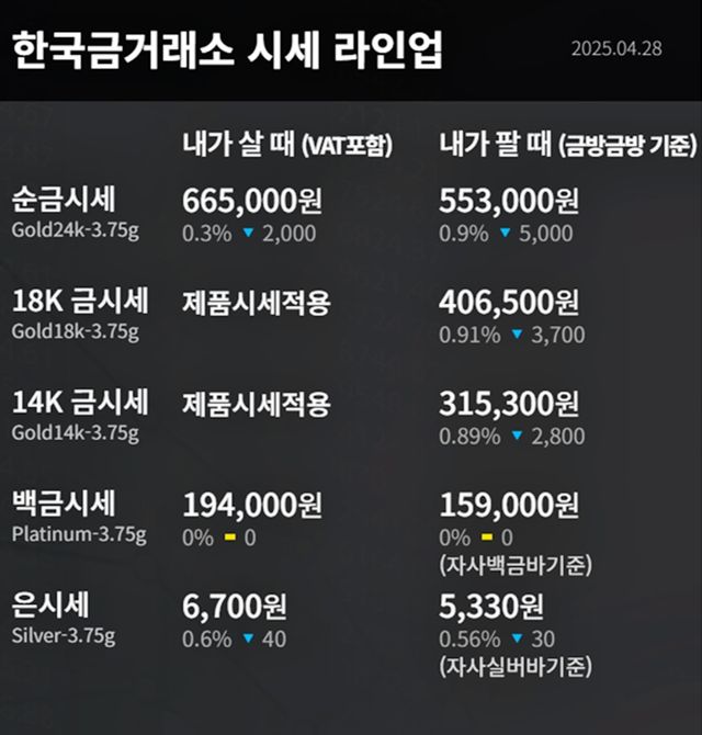 순금(24K) : 매입가 66만 5000원 / 매도가 55만 3000원