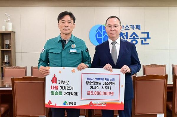 윤경희 청송군수는 “청송을 위해 한마음으로 정성을 모아주신 모든 분들께 진심으로 감사드린다”며, “기탁해주신 소중한 성금과 물품은 산불 피해 주민들의 신속한 복구와 일상 회복을 위해 사용하겠다”라고 밝혔다.