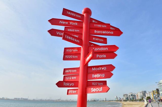 경북 포항시 북구 영일대해수욕장 해상공원 설치된 세계 이정표. / 뉴스1