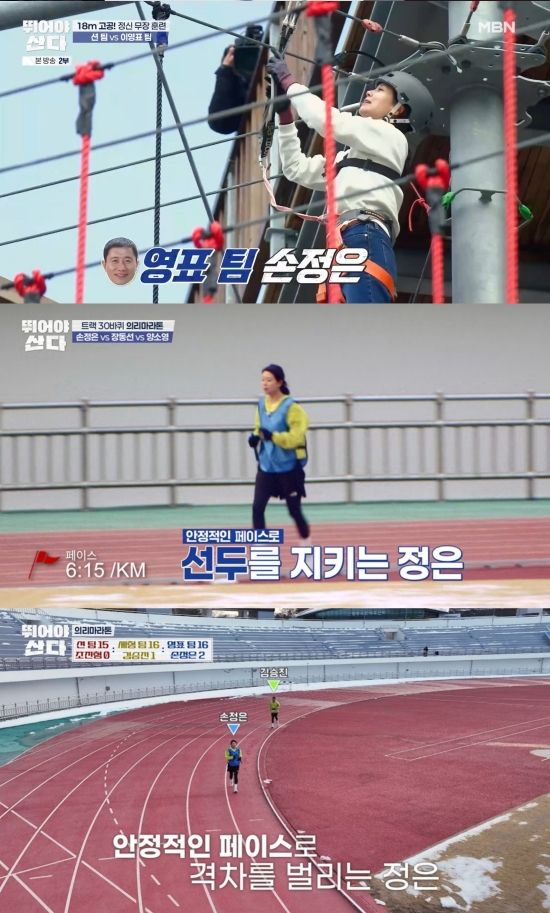‘뛰어야 산다’ 16인 비기너 대열에 합류한 손정은은 ‘인생 터닝 포인트’를 위한 새로운 출발선에서 만반의 준비를 마친 상황. 1화 5km 마라톤 테스트의 여운이 끝나기도 전에, 이번 2화에서는 ‘모닝런’부터 트랙 30바퀴를 도는 ‘의리 마라톤’까지 체력과 담력을 시험하는 다채로운 훈련을 보여주었다.