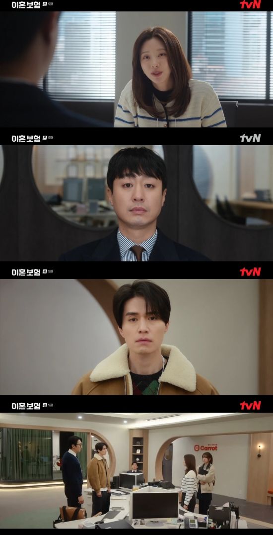 28일 방송된 tvN 월화드라마 '이혼보험' 9회에서는 강한들(이주빈 분)이 이혼보험 관련 자료를 유출했다는 누명을 쓴 모습이 그려졌다.