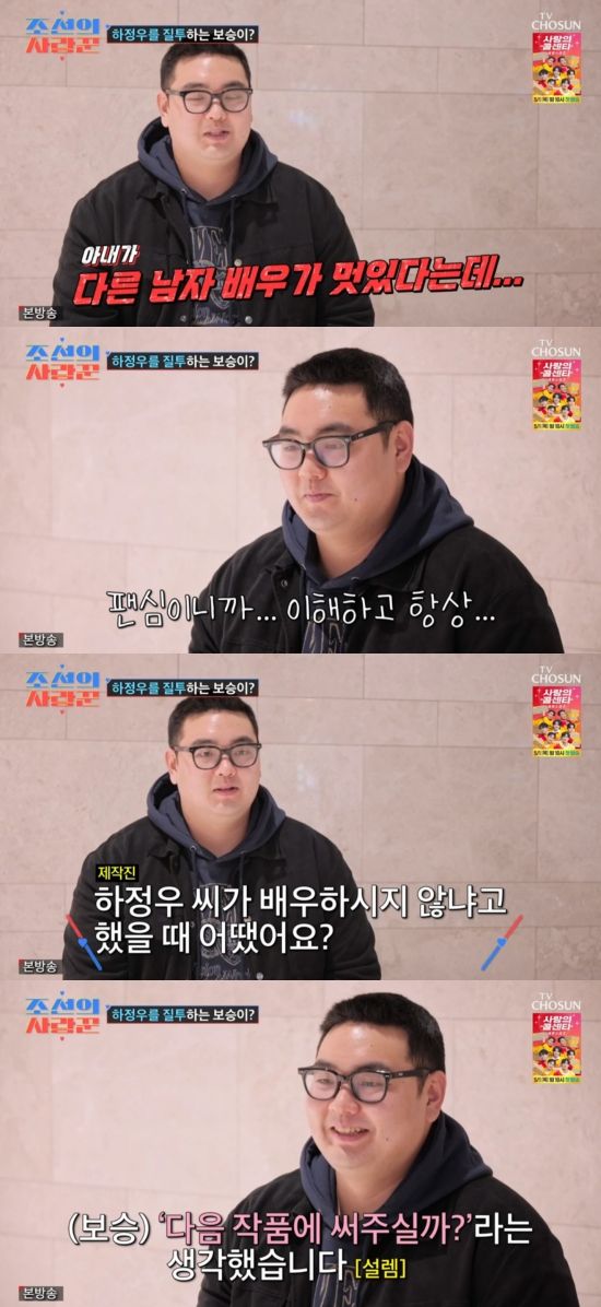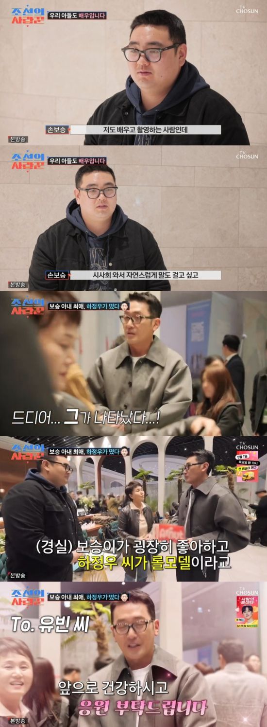 더 나아가 이경실은 "우리 보승이가 굉장히 좋아하고 개인적으로 롤 모델이라고"라며 덧붙였고, 하정우는 "배우 하시지 않으시냐"라며 반가워했다.