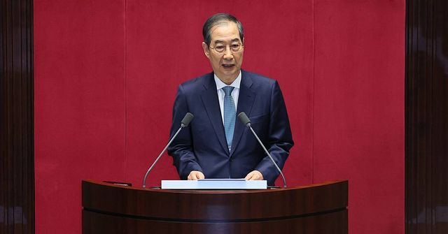한덕수 대통령 권한대행 국무총리가 지난 24일 서울 여의도 국회 본회의장에서 2025년도 제1회 추가경정예산안에 대한 정부의 시정연설을 하고 있다 / 뉴스1(총리실 제공)