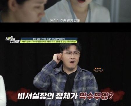 (엑스포츠뉴스 김현정 기자) '탐정들의 영업비밀'에서 유부녀 대표가 데려온 '완벽한 男비서'의 정체가 '박수무당'이었다는 충격 실화가 공개됐다. 그리고 MC 데프콘과 게스트로 함께한 '꼬북좌' 유정의 '현커 탄생' 분위기가 설렘을 자극했다.