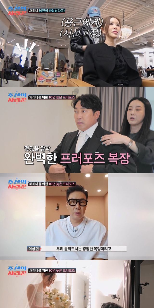 한 술 더 떠 '디바'의 멤버 민경, 지니와 함께한 웨딩드레스 숍에서는 채리나가 환복하는 사이 첩보작전을 방불케 하는 '프러포즈 대작전'이 실행됐다. 꽃과 빔 프로젝터, 그리고 대미를 장식할 '신랑' 박용근의 슈트 차림까지 긴장 속에 준비됐다. 환복을 마친 채리나의 커튼이 열리자 가수 백지영의 진심이 담긴 영상 메시지가 공개됐다. 곧이어 이상민, 간미연, 아유미, 나르샤, 김호영 등 지인들의 축하 메시지도 이어져 감동을 자아냈다. 또한 채리나의 시어머니와 어머니 또한 사랑이 담긴 응원으로 대미를 장식했다.