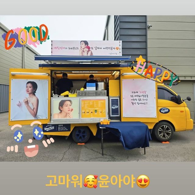 공개된 사진에는 윤아가 보낸 커피차가 담겨 있으며, 특히 잘 나온 손예진의 화보들이 카피차를 장식하고 있어 눈길을 끈다.