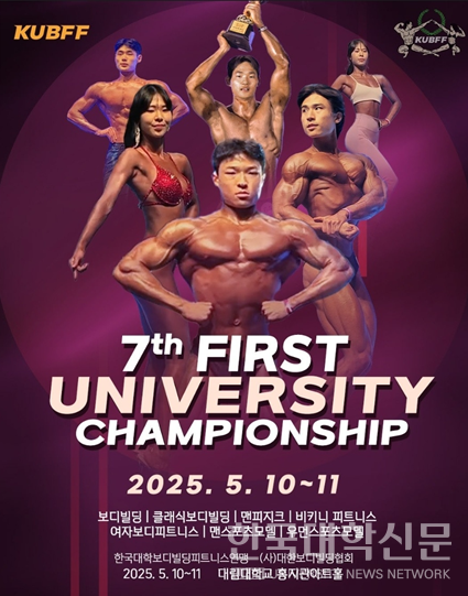 [한국대학신문 김영성 기자] 한국대학보디빌딩피트니스연맹 (kubff)쿠프가 주최하는 2025년 제7회 전국대학보디빌딩ㆍ피트니스 대회(퍼스트 챔피언쉽)가 5월 10일 토요일에 열리고 11일에는 PMC KOREA 에서 주최하는 제3회 필라테스ㆍ모델 대회가 대림대학교 홍지관 아트홀에서 열린다.