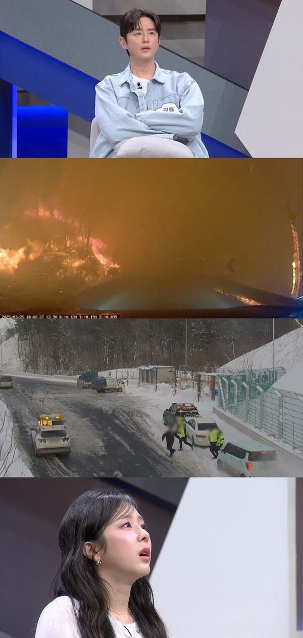 공개된 블랙박스 영상에는 짙은 연기와 불길을 뚫고 탈출을 시도하는 부부의 긴박한 상황이 그려져 긴장감을 더한다. 도로 곳곳이 불길에 휩싸여 한 치 앞도 보이지 않는 상황에 패널들은 "이 정도일 줄은 몰랐다", "너무 무서웠겠다"며 충격을 감추지 못한다.