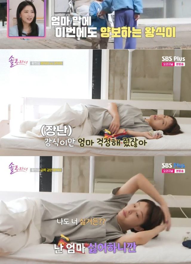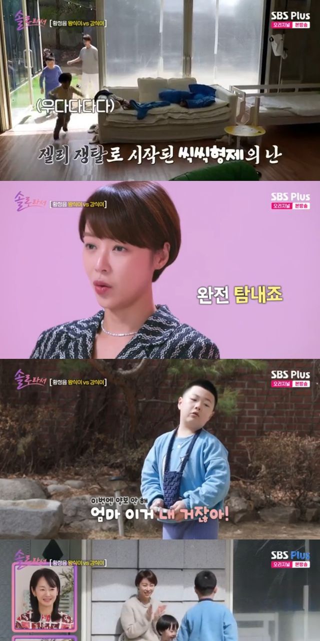 29일 방송한 SBS Plus '솔로라서'에는 아들 왕식, 강식을 홀로 육아하는 황정음의 일상이 공개됐다.