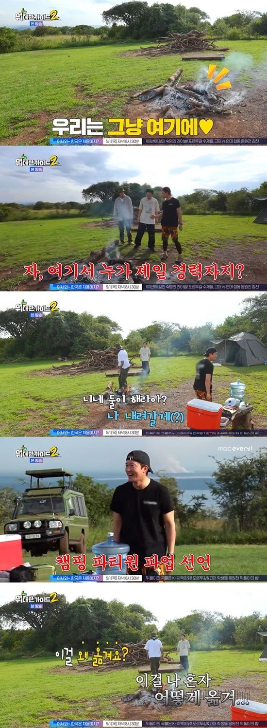 29일 방송된 MBC에브리원 ‘위대한 가이드2’에서는 박명수X김대호X최다니엘 대.다.수 3인방이 아프리카 르완다 여행 마지막 날을 맞이해 사파리 캠핑에 도전했다.