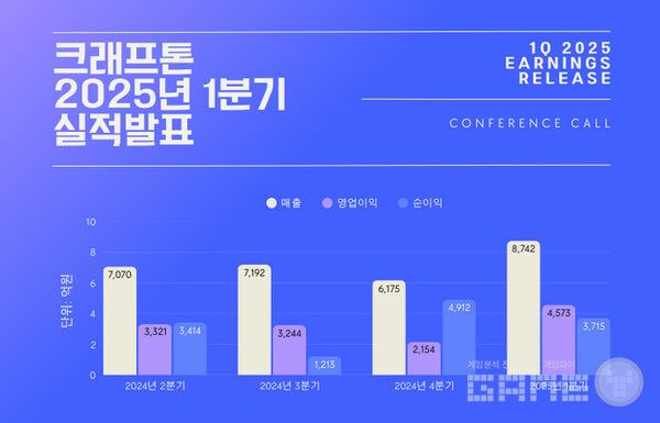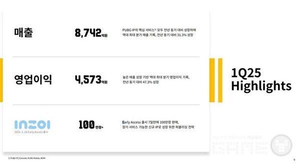 크래프톤이 2025년 1분기 실적발표를 29일에 진행했다.