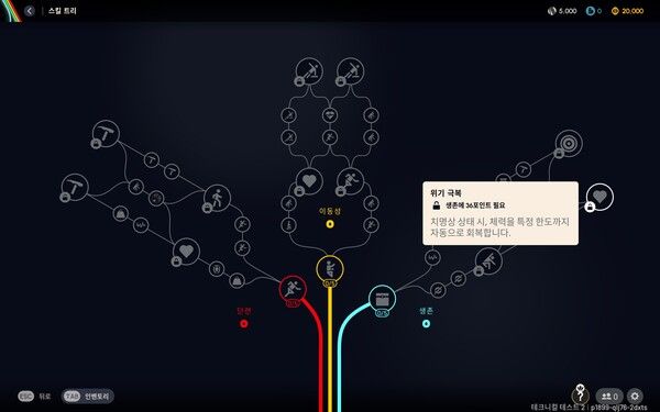 이러한 개발진의 게임디자인은 이번 테스트에서 확인 가능한 캐릭터 스킬 트리 시스템에서도 확인할 수 있다. ‘아크 레이더스’의 캐릭터 성장은 ‘단련’, ‘이동성’, ‘생존’ 등 총 세 가지 큰 줄기의 스킬 트리를 제공한다. 자유롭게 스킬 퍽들을 선택해 육성해 나갈 수 있으며, 한 방면으로 극대화된 성장을 추구하거나 효율적인 성장 단계를 선택하며 나아갈 수 있는 형태의 성장이다.